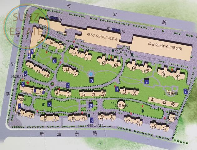 天山星城(The Starry Town)長寧区威寧路358弄×天山路(Alley 358 WeiNing Road ChangNing District)2007年スーパー「ALDI」、商業施設「ビンゴ広場」地下鉄2号線「威寧路駅」に隣接する交通便利な立地。広い敷地内には緑も多く、裏門から出ると地元の人々で賑わう市場や商店が立ち並び、ローカル上海も楽しめます。