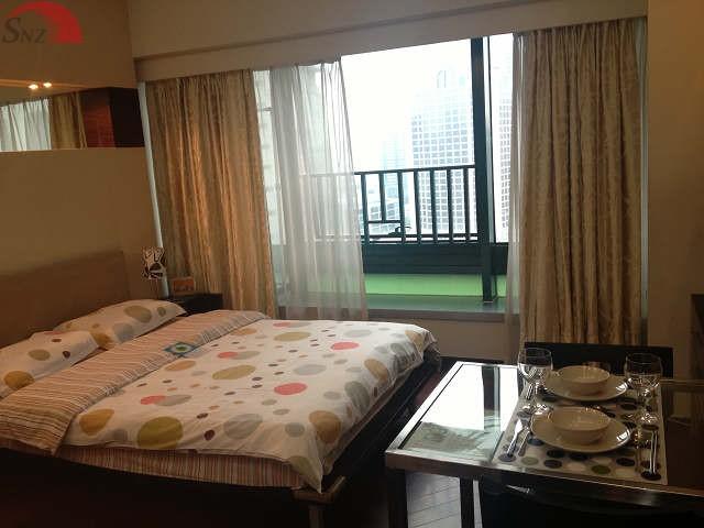 静安寺駅前の便利なサービスアパート。周辺には多くの商業ビルや飲食店が立ち並び、非常に賑やか。